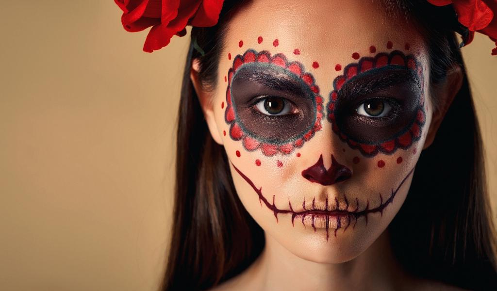 Wallpaper Girl with a make-up mask on her face