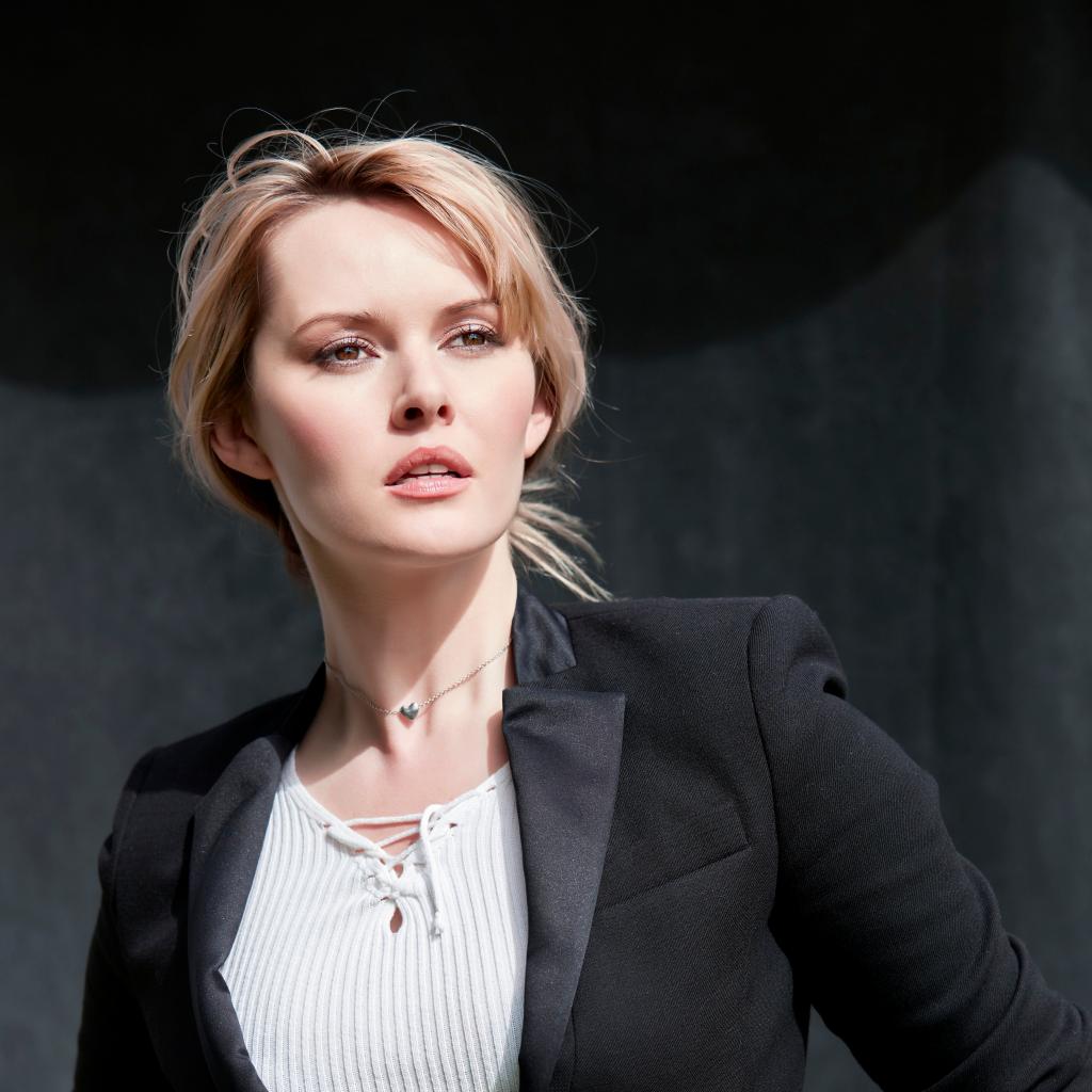 Wallpaper Beautiful stylish brown-eyed blonde in a black jacket