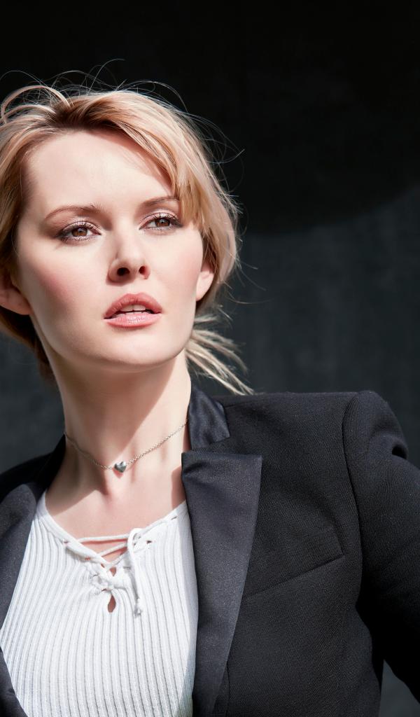 Wallpaper Beautiful stylish brown-eyed blonde in a black jacket