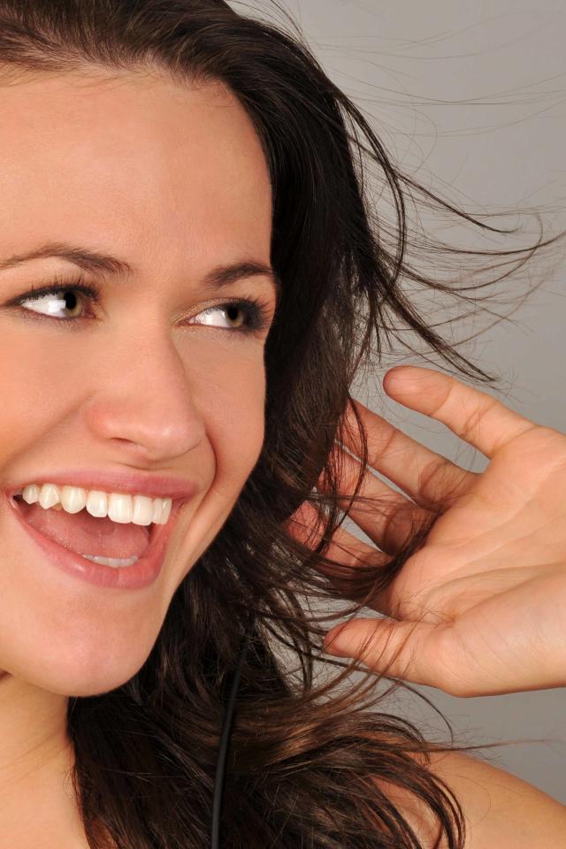 Wallpaper Smiling girl in headphones on a gray background