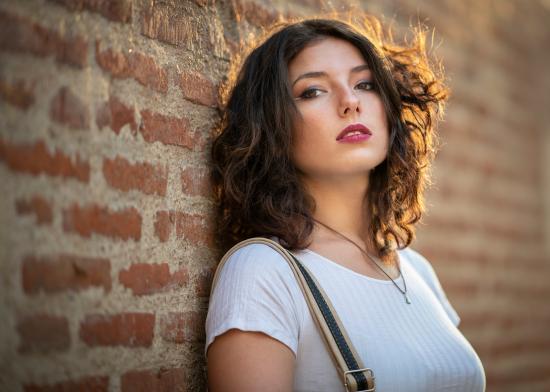 Wallpaper Beautiful girl stands by the wall