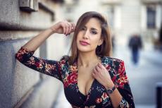 Wallpaper Beautiful brunette in a leather jacket stands against the wall