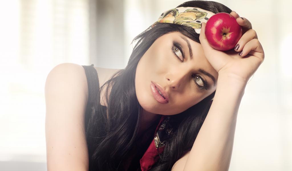 Wallpaper Beautiful brunette with an apple in her hand