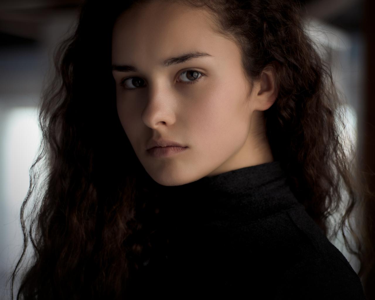 Wallpaper Sad brown-eyed girl with long hair