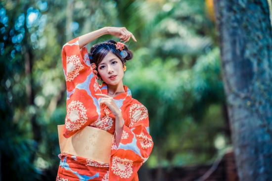 » Wallpaper Young asian in kimono in the park