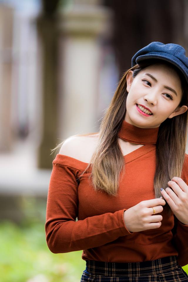 Wallpaper Smiling Asian girl in a cap