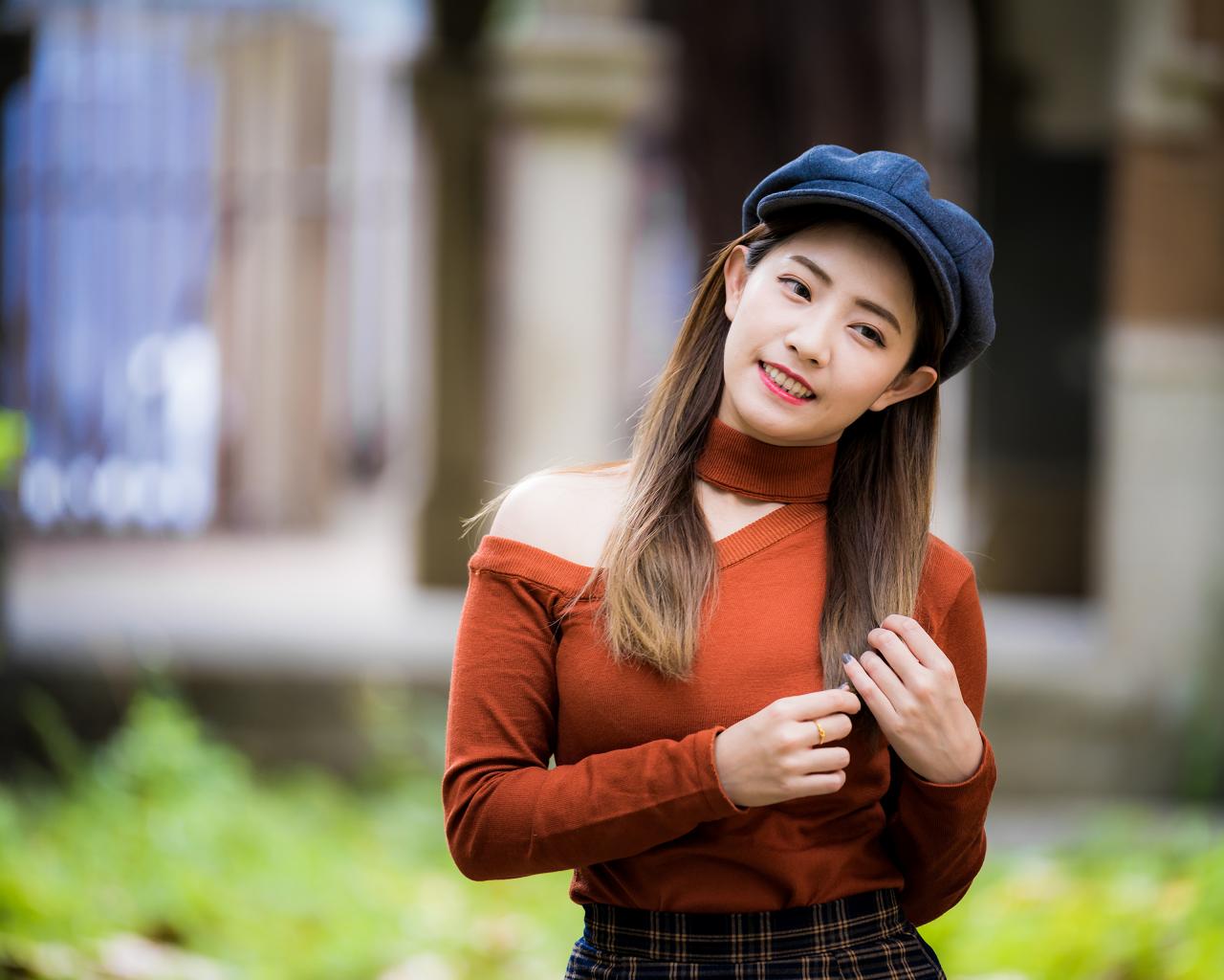 Wallpaper Smiling Asian girl in a cap