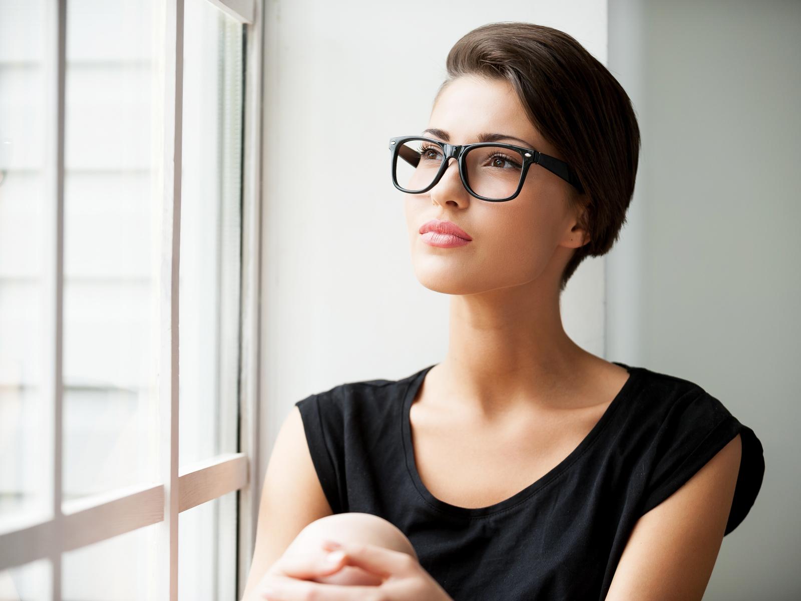 Wallpaper Business girl in glasses sits by the window
