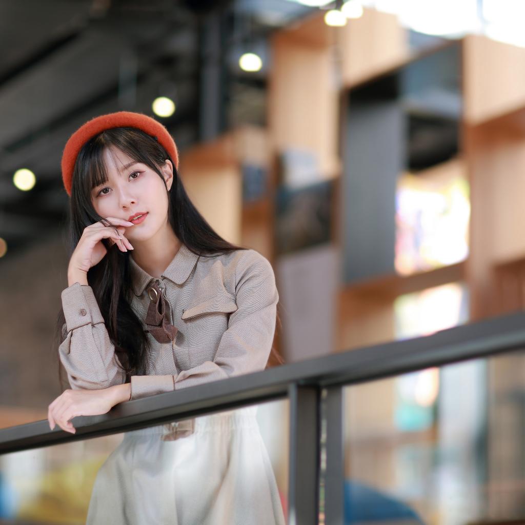 Wallpaper Asian woman in a gray dress stands at the railing