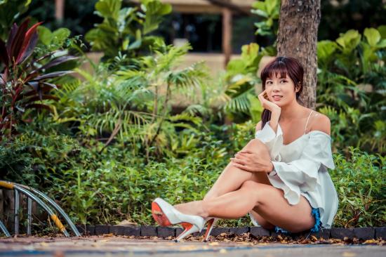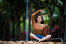 Wallpaper Beautiful asian girl sitting on the ground in a park