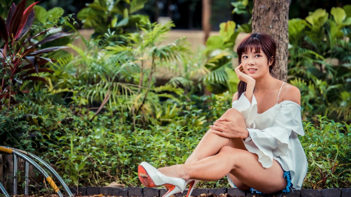 Wallpaper Beautiful asian girl sitting on the ground in a park