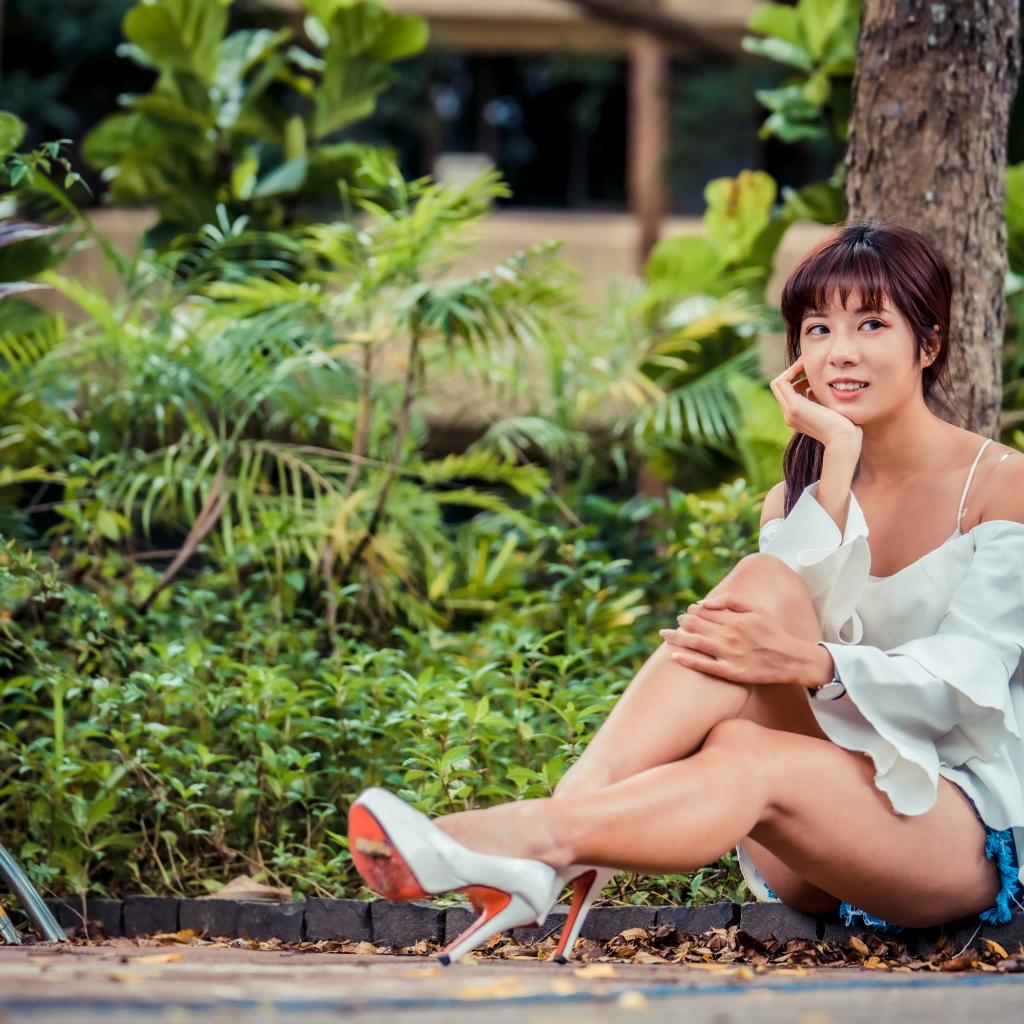 Wallpaper Beautiful asian girl sitting on the ground in a park