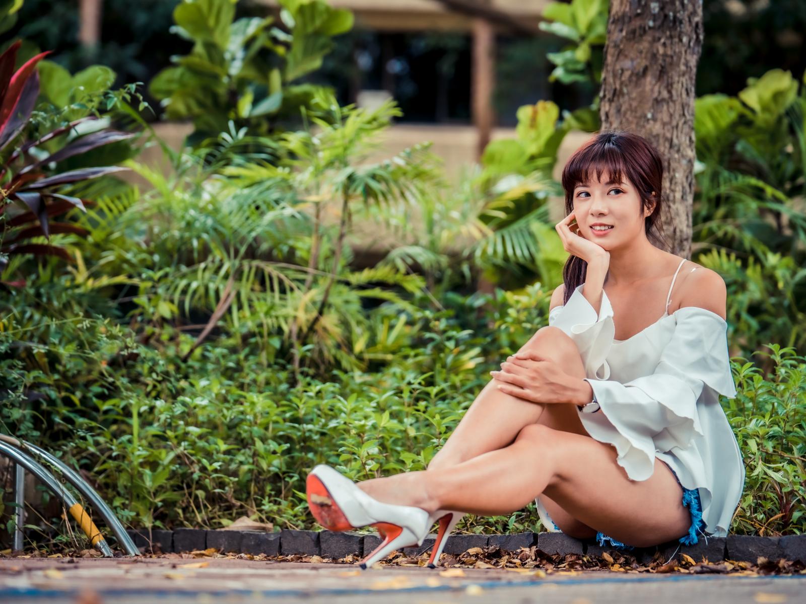 Wallpaper Beautiful asian girl sitting on the ground in a park