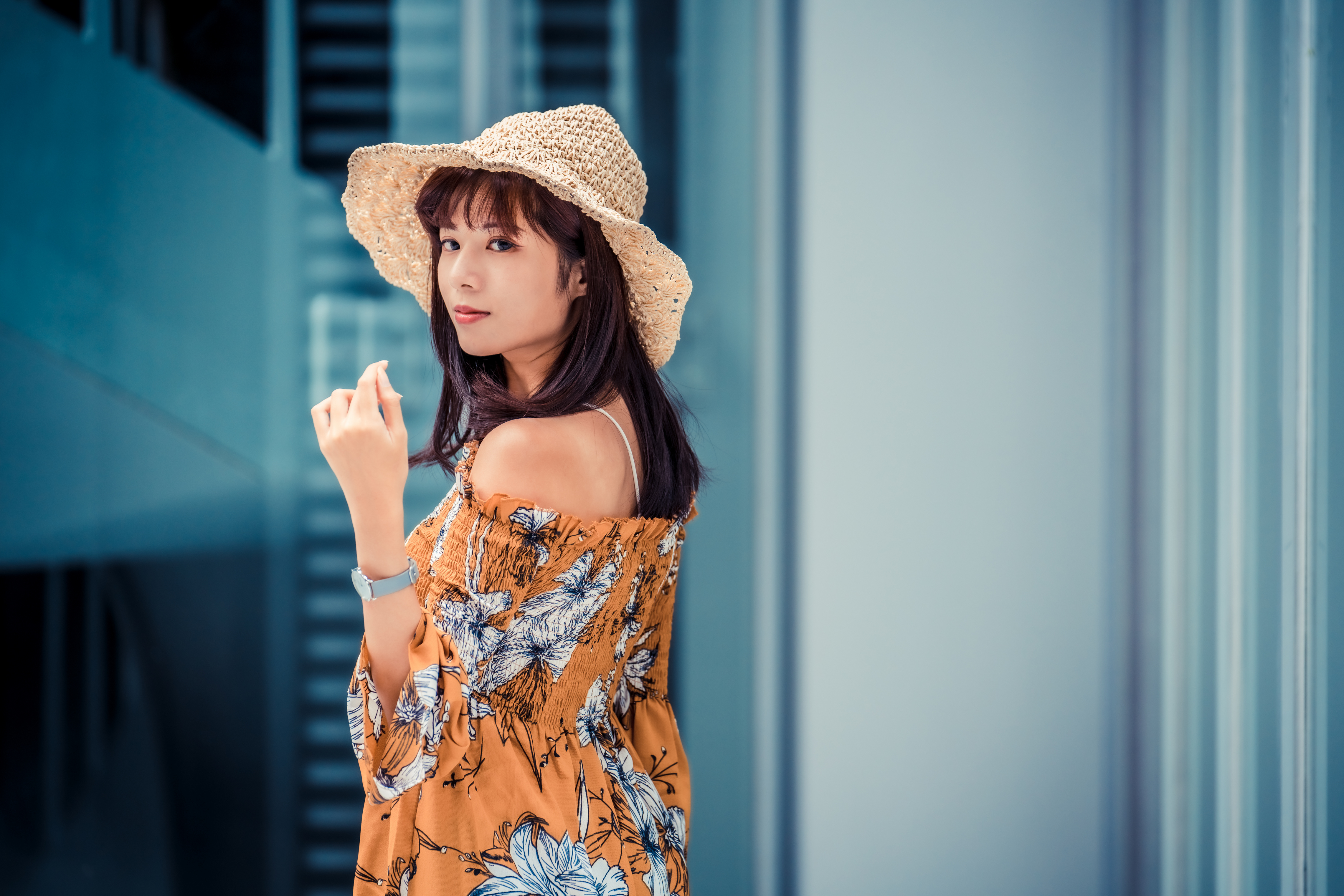 Wallpaper Asian girl in summer hat