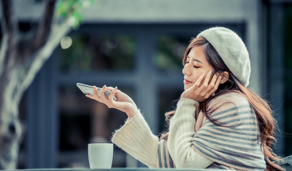 Wallpaper Pensive girl with a phone sits in a cafe