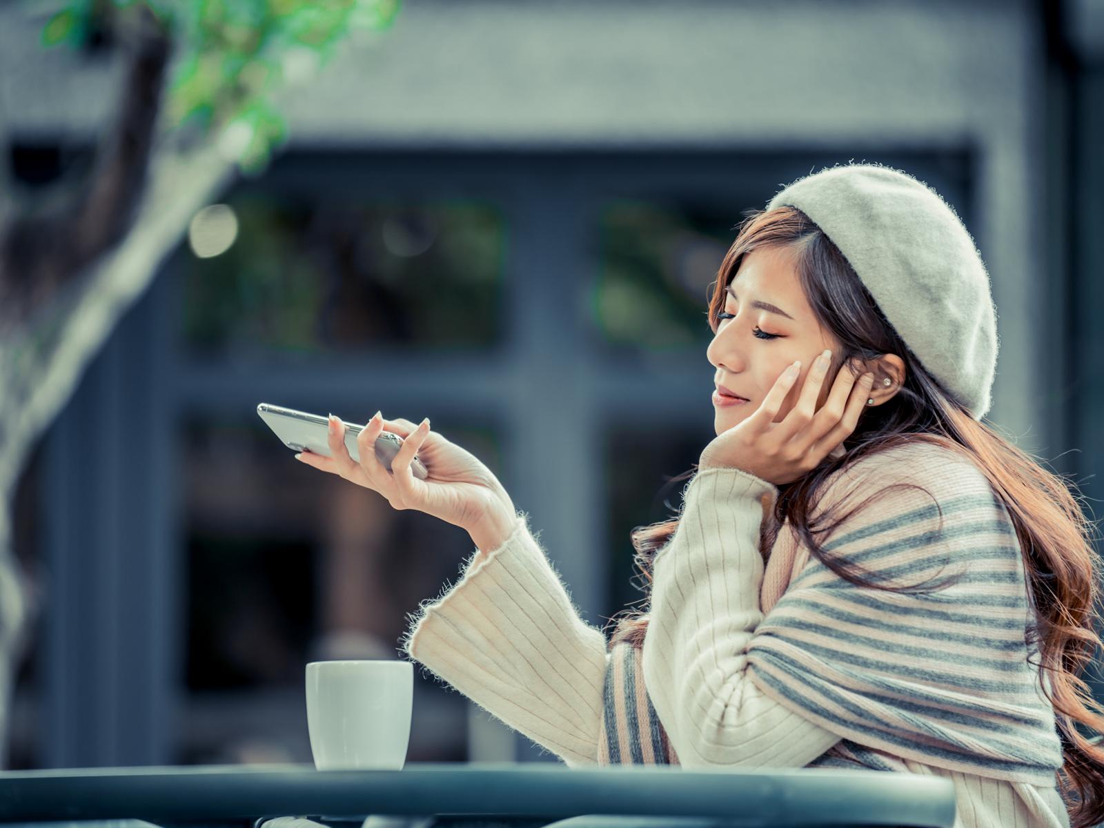 Wallpaper Pensive girl with a phone sits in a cafe