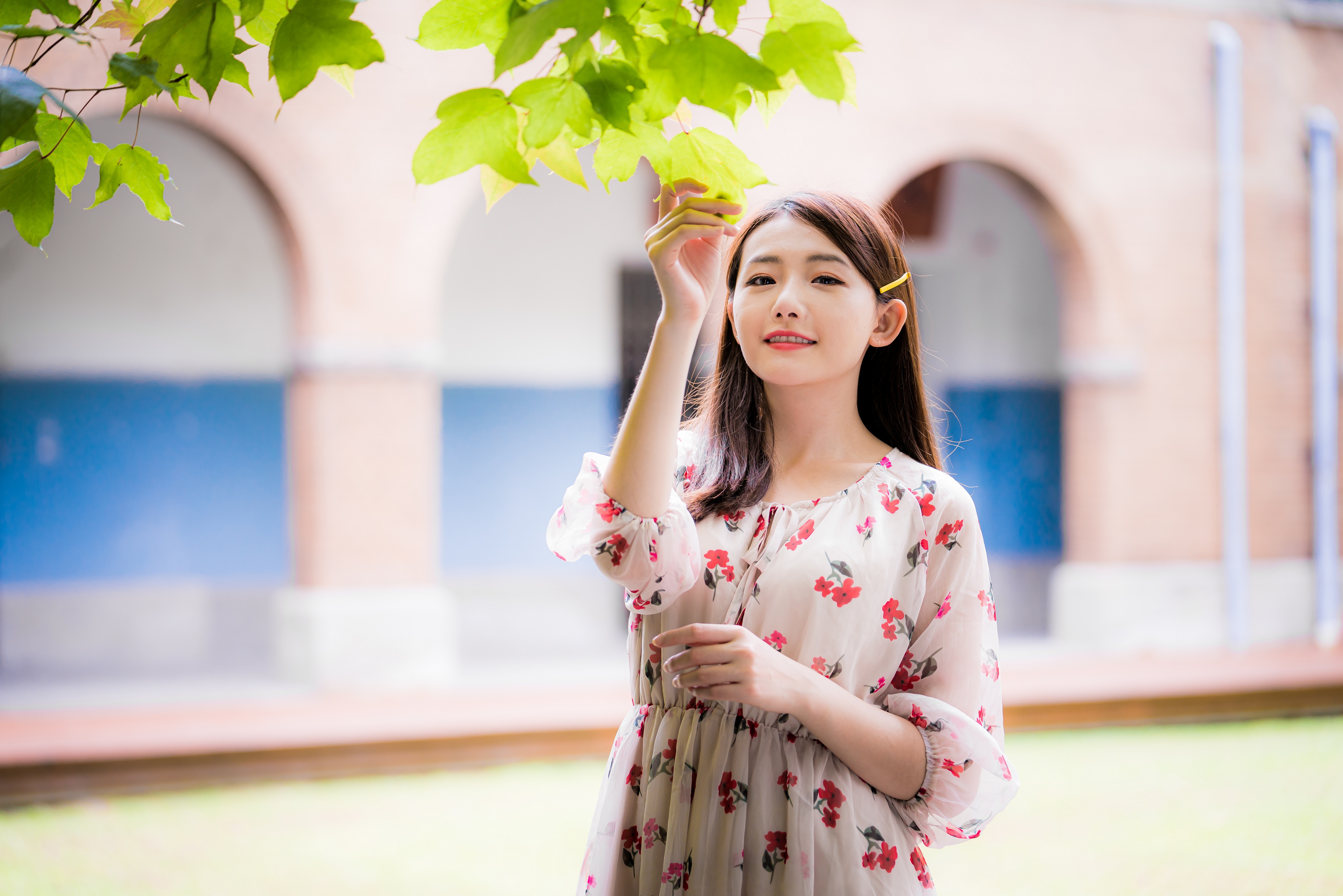 » Wallpaper Smiling girl in a dress by the tree