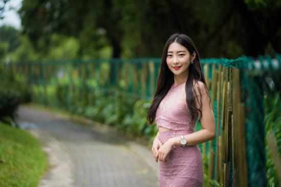 Wallpaper Cute smiling asian in a suit at the fence
