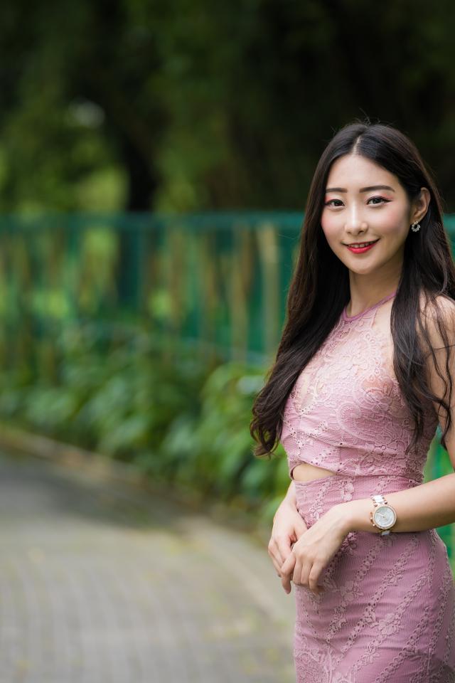 Wallpaper Cute smiling asian in a suit at the fence