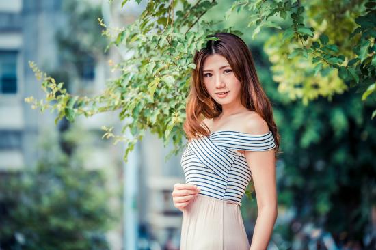 Wallpaper Asian girl stands under a tree in a park
