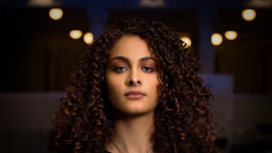 Wallpaper Long curly hair of a beautiful blue-eyed girl