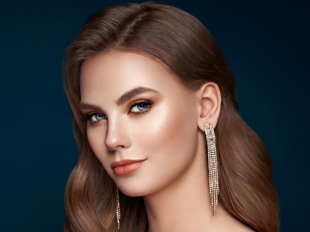 Wallpaper The face of a beautiful blue-eyed girl with long hair