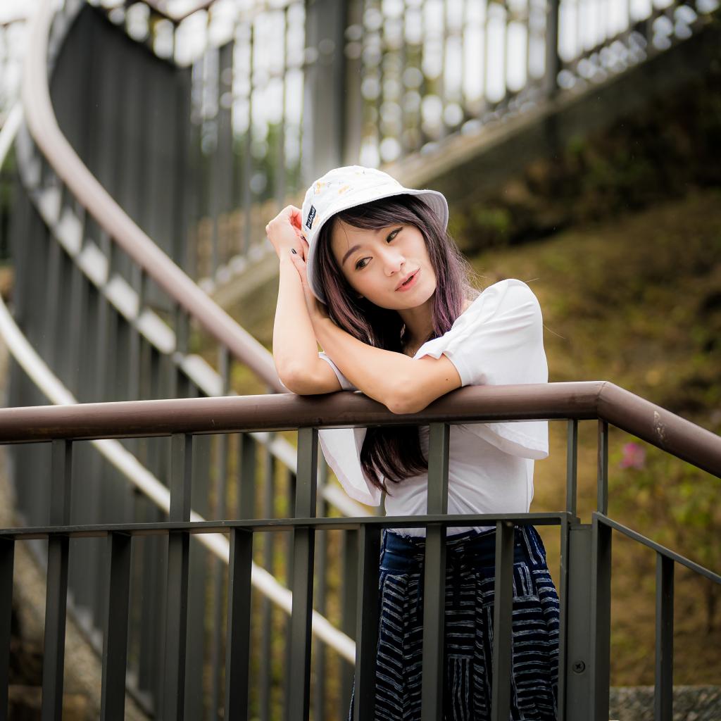Wallpaper Beautiful Asian woman in panama stands at the railing