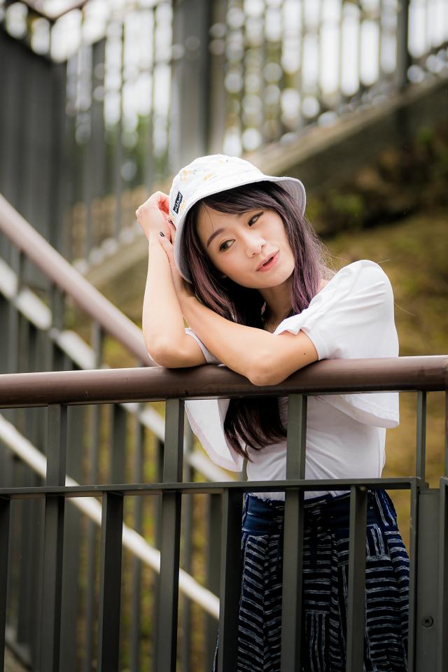 Wallpaper Beautiful Asian woman in panama stands at the railing