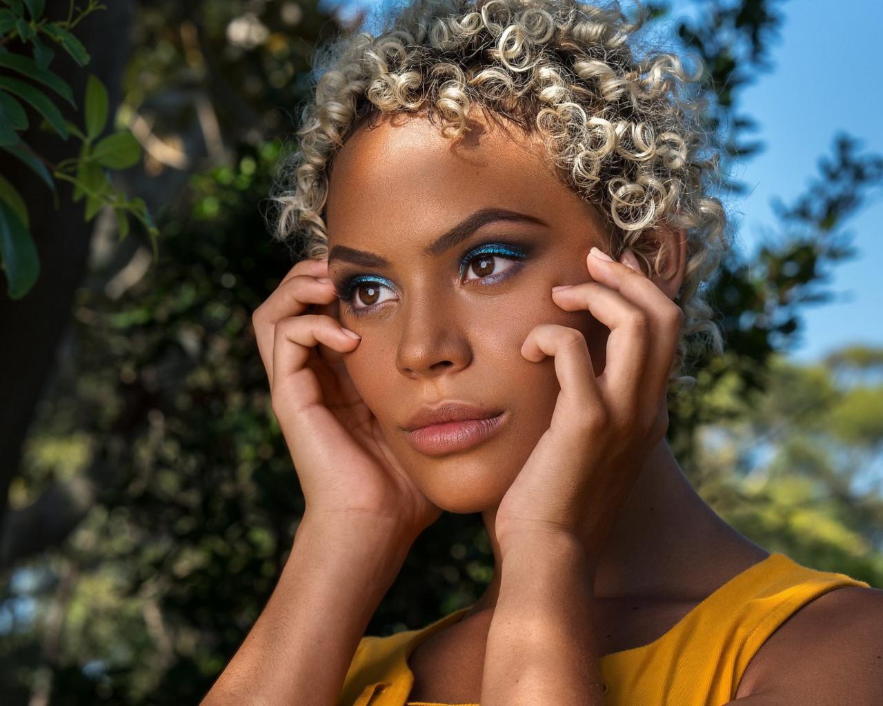 Wallpaper Dark-skinned girl with curly hair