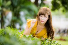 Wallpaper Asian girl in a short dress in the park