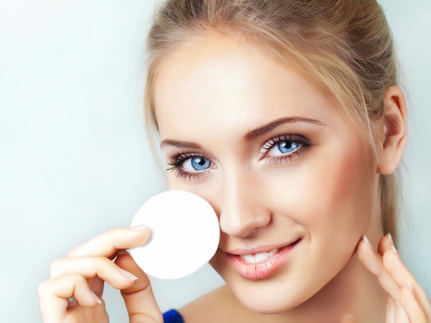 Wallpaper Beautiful blue-eyed girl with a cotton pad in hand