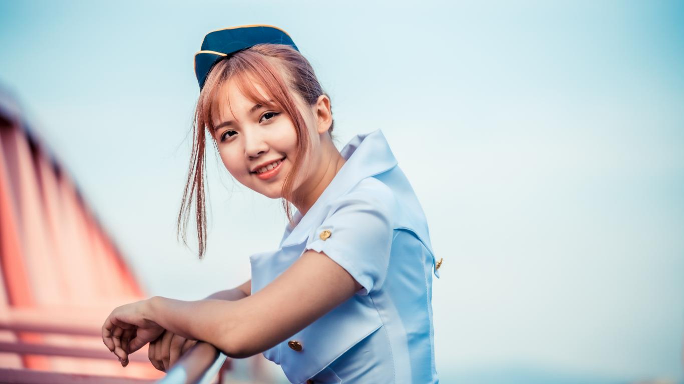 » Wallpaper Stewardess girl in a blue shirt