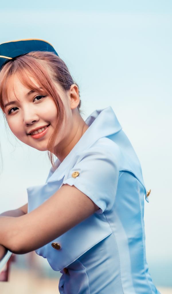 Wallpaper Stewardess girl in a blue shirt