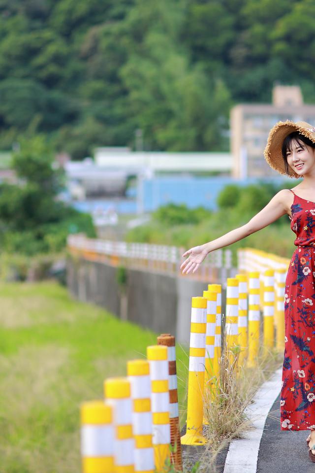Wallpaper Cheerful Asian girl in a colorful sundress