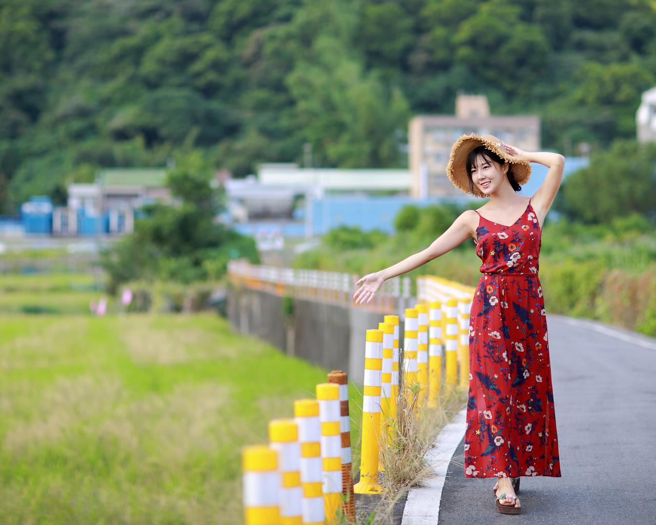 Wallpaper Cheerful Asian girl in a colorful sundress