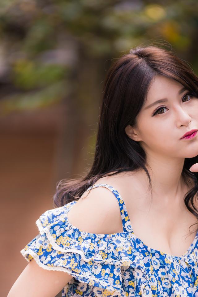 Wallpaper Young Asian girl in a sarafan with a hat in his hand