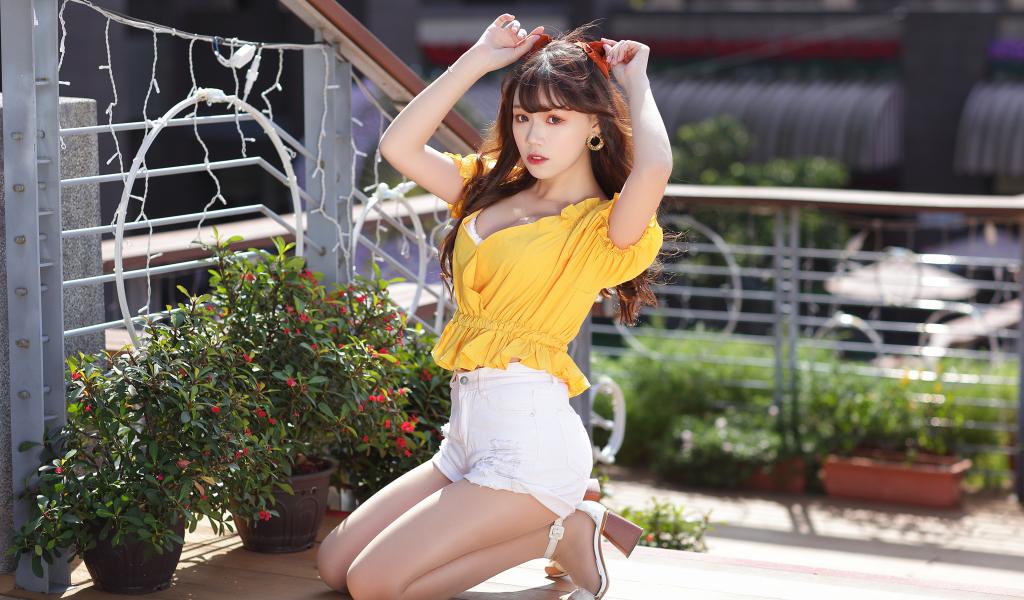 Wallpaper Cute asian girl in short white shorts