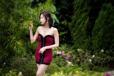 Wallpaper Cute Asian in a short beautiful dress on a background of blue sky