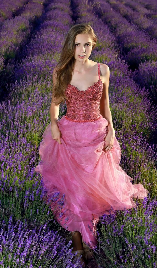 Wallpaper Beautiful girl in a pink dress on a lavender field
