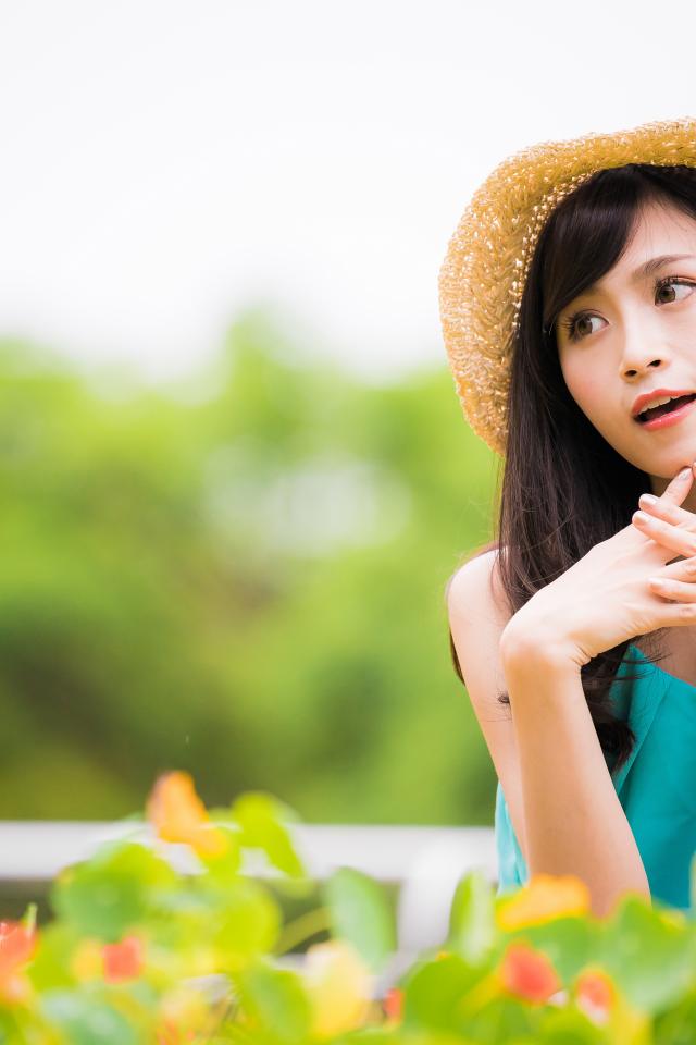 Wallpaper Asian girl with a clock on a hand in a hat