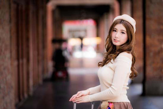 Wallpaper Cute Asian in a beret at the train station