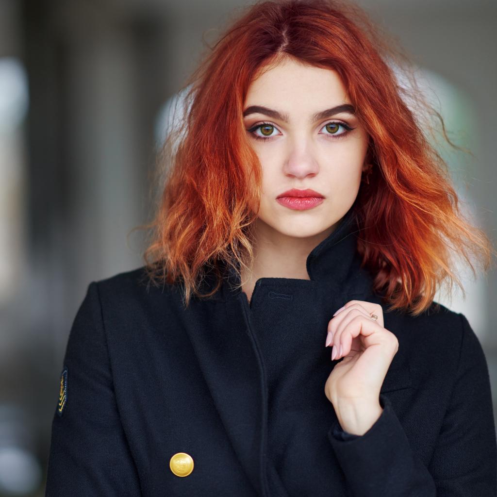 Wallpaper Beautiful red-haired girl in a black coat