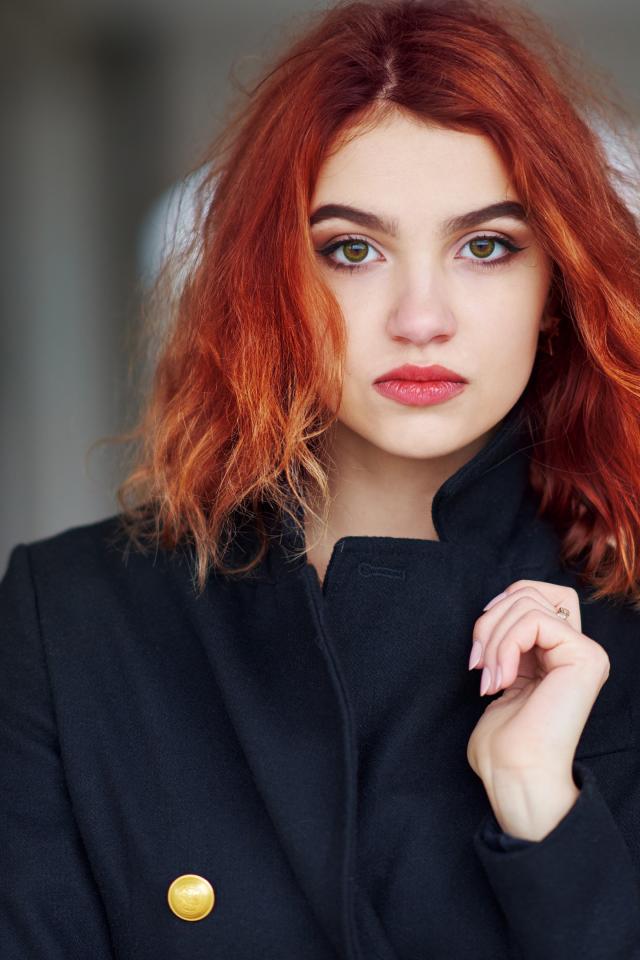 Wallpaper Beautiful red-haired girl in a black coat