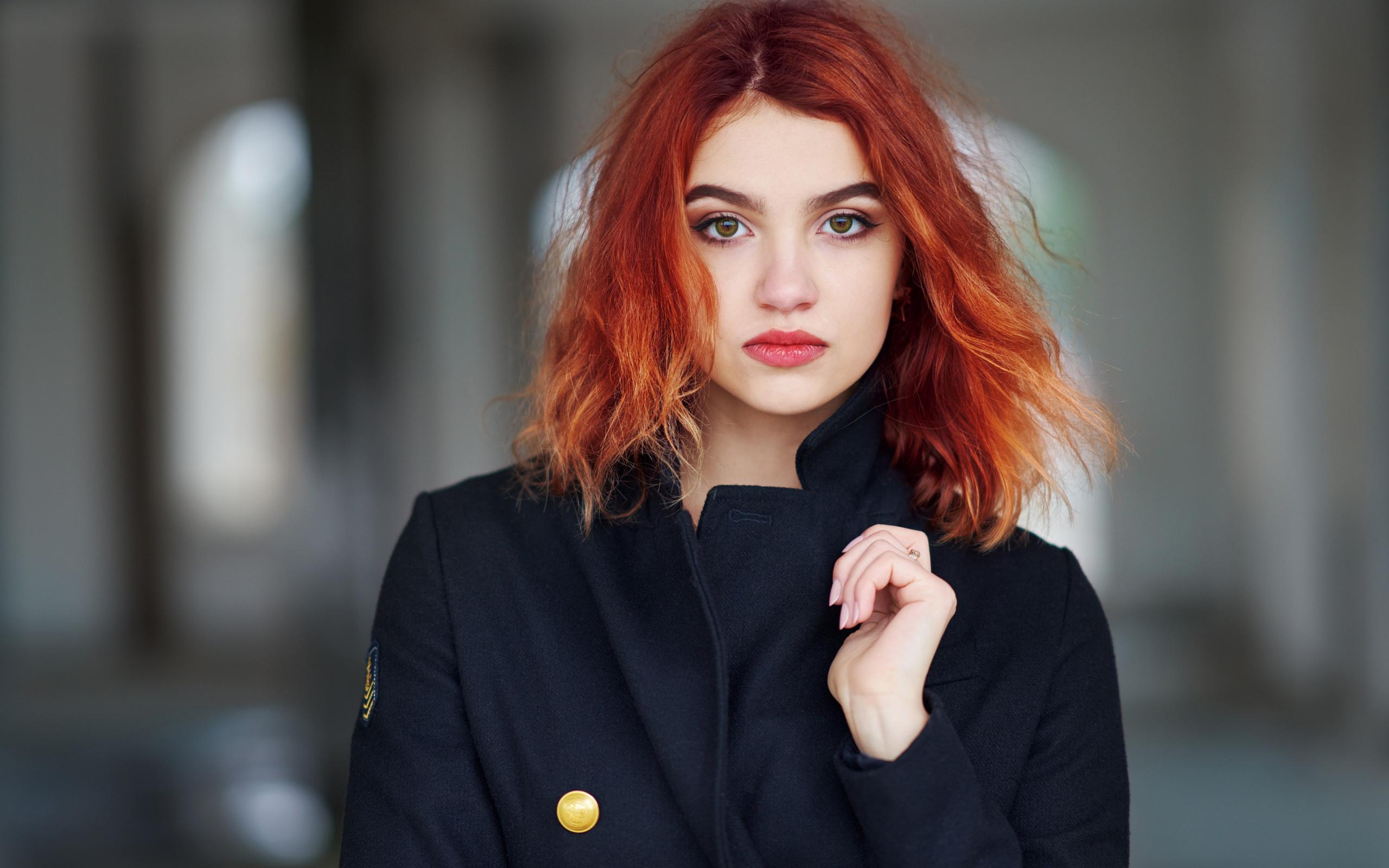 Wallpaper Beautiful red-haired girl in a black coat