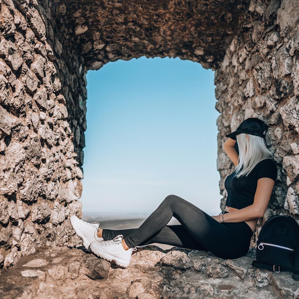 Wallpaper Girl sitting in the window of an old building