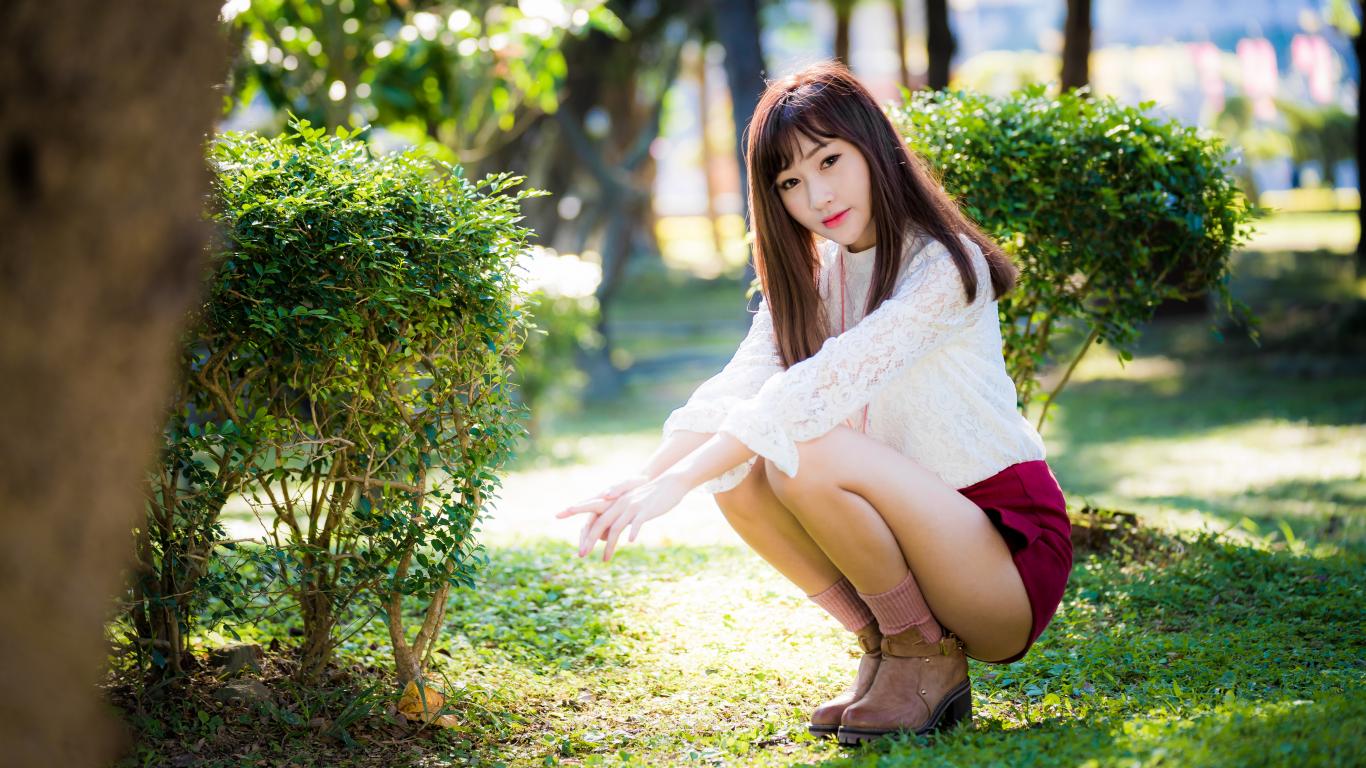 Wallpaper Beautiful Asian girl in a blue dress in the park