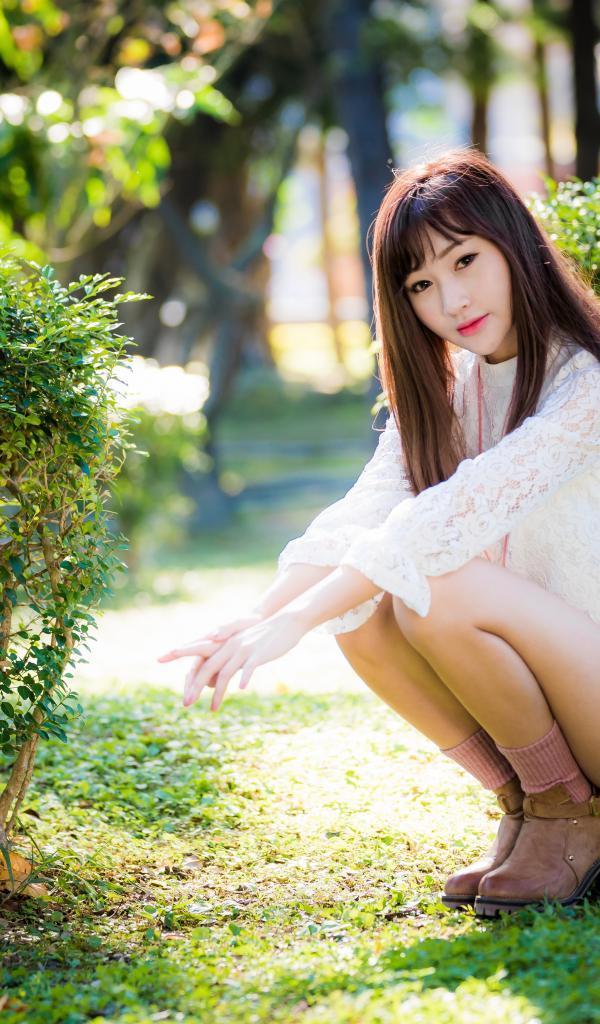 Wallpaper Beautiful Asian girl in a blue dress in the park