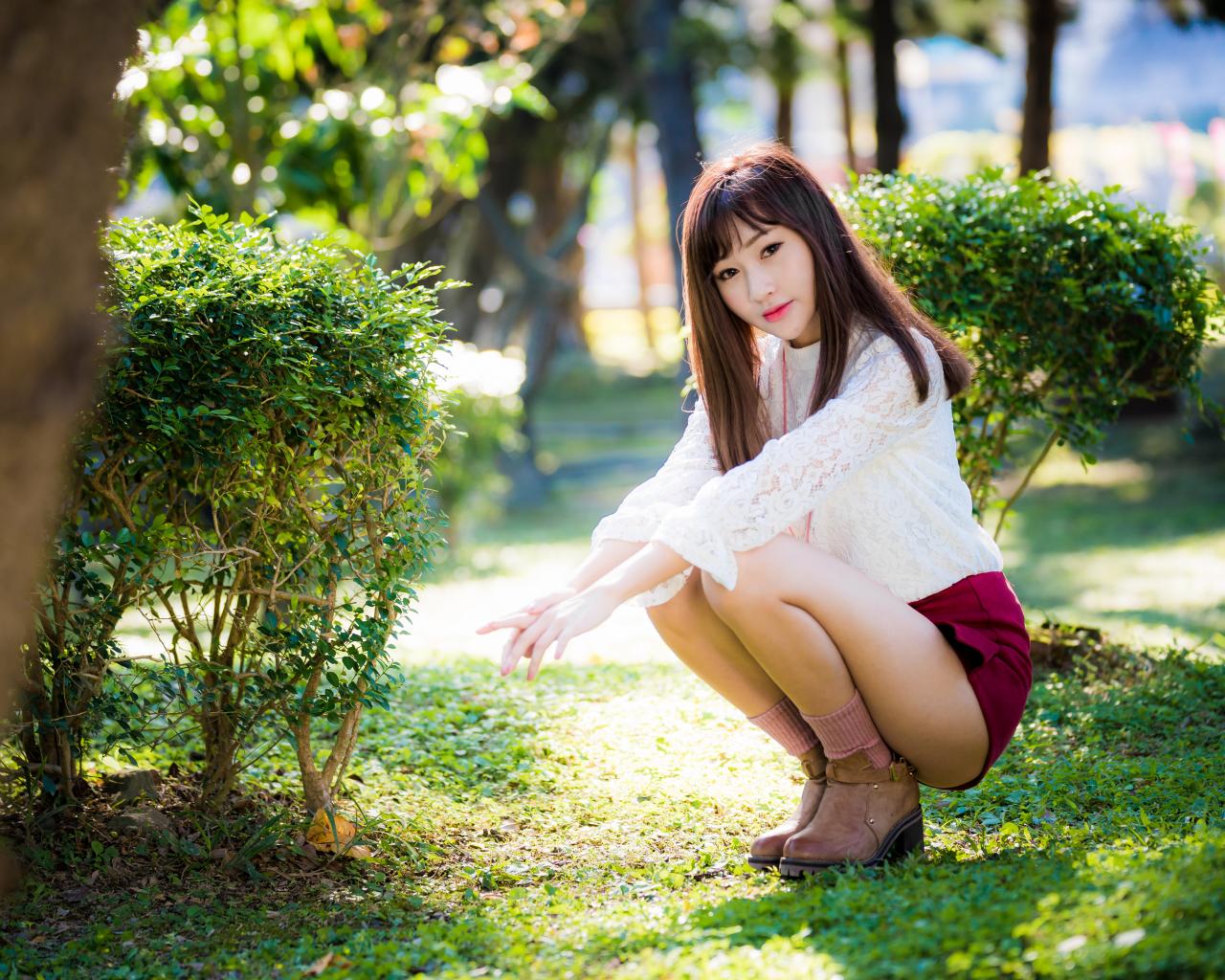 Wallpaper Beautiful Asian girl in a blue dress in the park