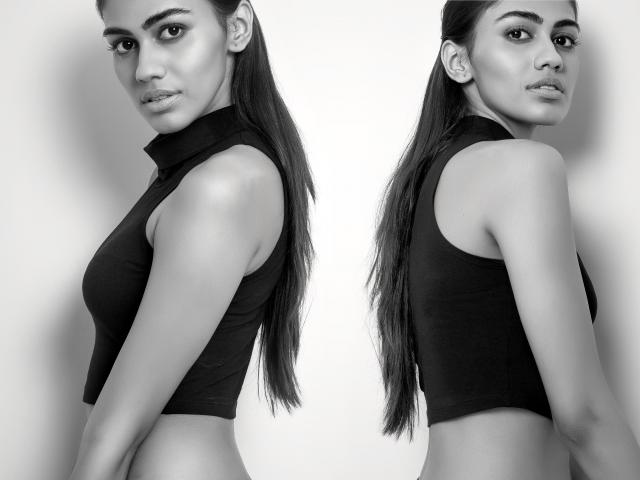 Wallpaper Two twin sisters girls black and white photo