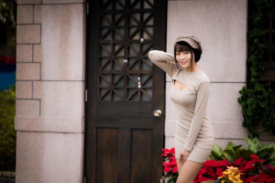 Wallpaper Beautiful Asian girl in a dress stands at the door